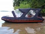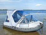 Многофункциональный ходовой тент, объединяющий в себе носовой тент и полный тент-палатку, 3 в 1. Позволяет легко отстегивать и пристегивать дополнительные части
