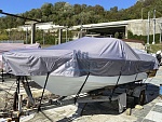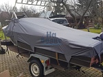 Чехол надежно крепится к лодке с помощью системы из нескольких ремней, которые крепятся к прицепу и ремнем проходящим по периметру через люверсы. Таким способом можно максимально плотно прижать края чехла к корпусу лодки и предотвратить сползание чехла под воздействием встречных потоков воздуха. Также, при определенном способе крепления самой лодки к прицепу для транспортировки, чехол будет дополнительно прижат этими креплениями.